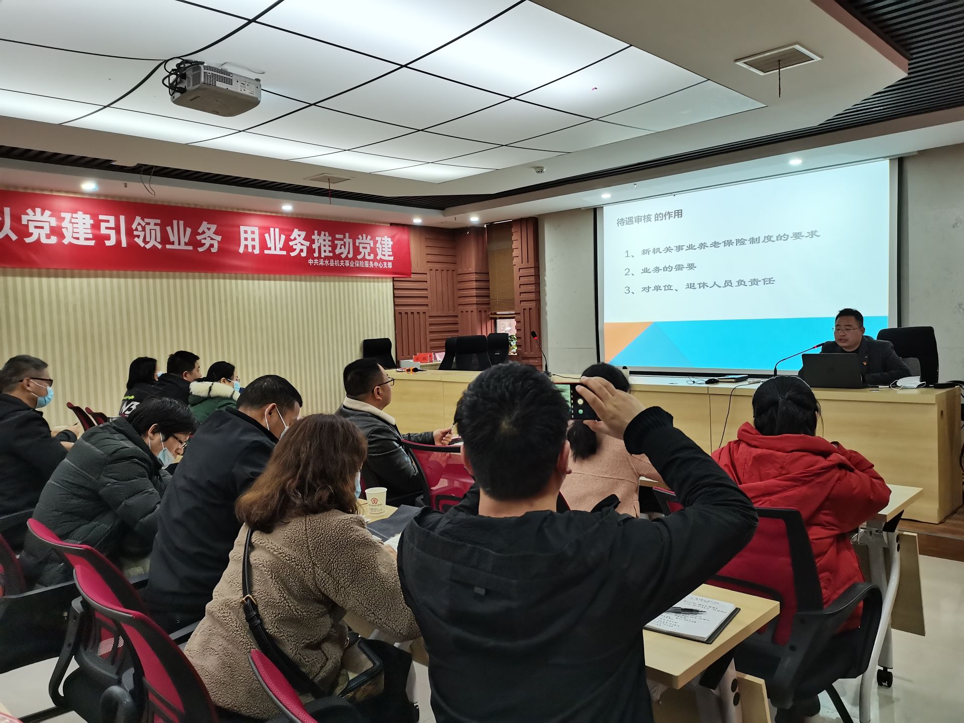 3月25日,春雨连绵,气温骤降,机关事业保险服务中心“党建+业务”培训活动现场却热火朝天,掌声雷动。三位机关事业保险服务中心的年青党员、业务骨干就机关事业养老保险业务中的登记核定、待遇申领、职业年金等相关业务做了详细的讲解,精准解决了参保单位办理机保业务时高频出错的问题。来自不同乡镇的机关事业养老保险参保单位的42名代表带着各自在办理机保业务时出现的问题在现场认真地听,认真地记。