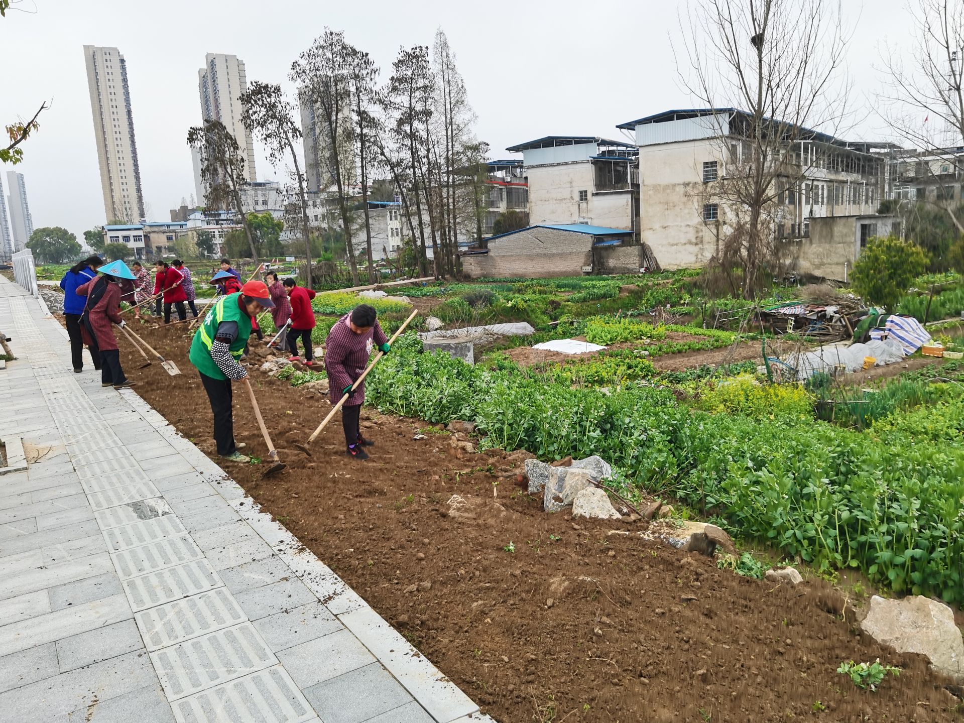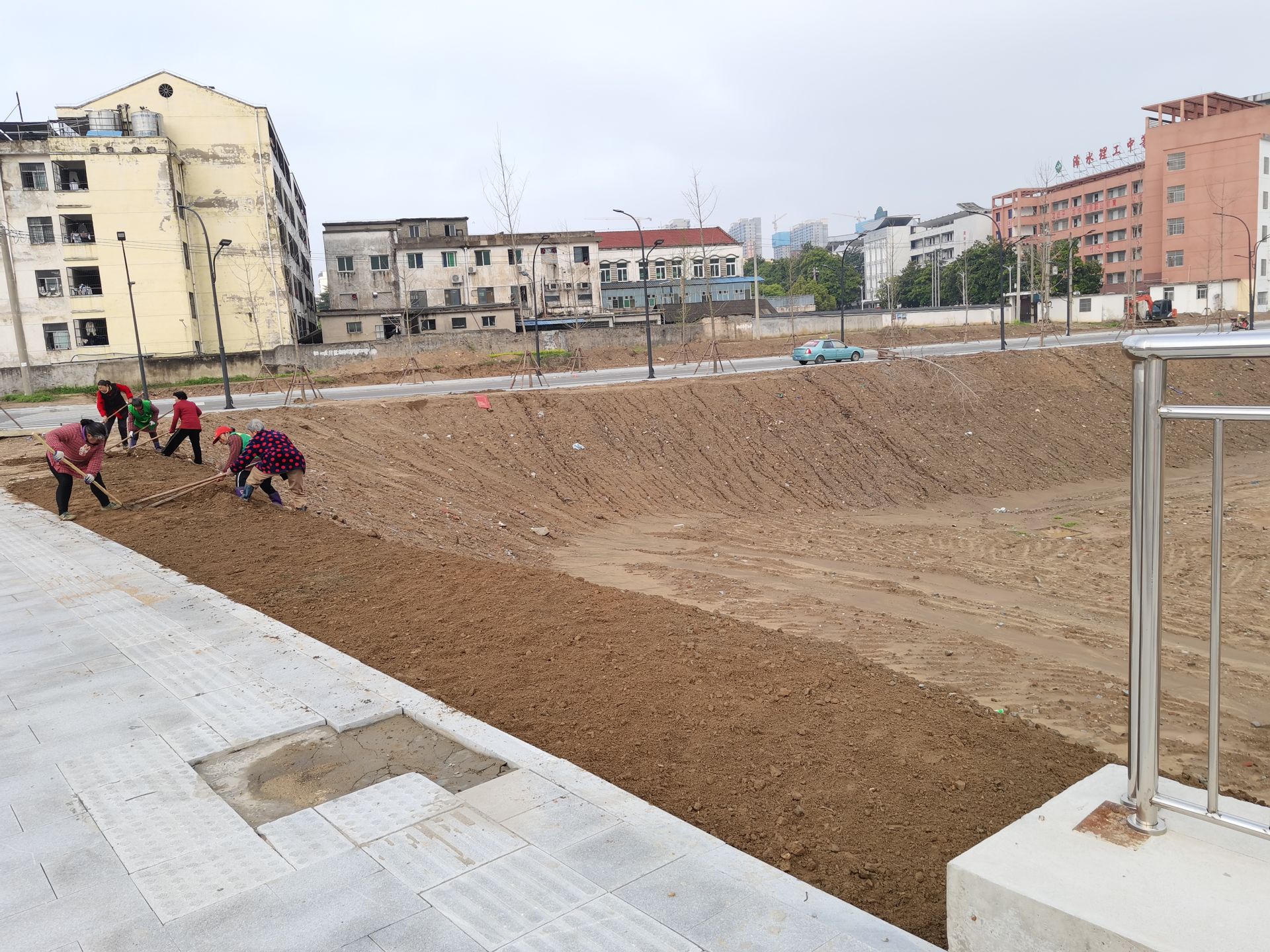 阳春三月,浠水河南北两岸机器轰鸣,钩机、铲车忙着挖掘平整、打造地形。只见一群群身穿草绿色背心的园林绿化工人有的在松土、清杂、吊运;有的在栽植银杏、桂花、红叶石楠、铺装草皮等。