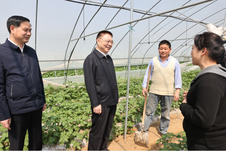 城关镇小丰山村近年来因地制宜发展蔬菜产业,稳定带动农户增收。大棚内,土豆、莴苣长势喜人。王蒙徽走进大棚,向正在劳作的农户了解种植、销售、收入等情况,鼓励脱贫户依托基地,团结协作,增收致富。王蒙徽对镇村干部说,要立足本地特色资源,把农民组织起来,大力培育带动能力强的富民产业,发展壮大村级集体经济,有力助推乡村振兴。