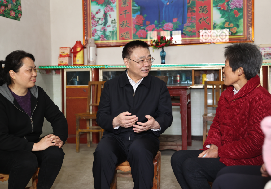 “家里几口人?”“生活怎么样?”来到脱贫户李春尧家,王蒙徽与一家人围坐拉家常。得知因病致贫的李春尧靠大棚种植、参与光伏公益岗位等方式创收摆脱贫困,儿子通过技能培训进城务工,王蒙徽为李春尧一家感到高兴,叮嘱她保重身体,祝愿他们一家生活越来越好。