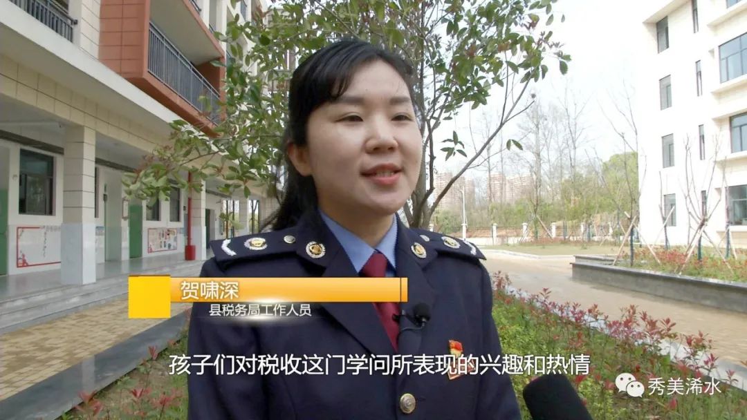 县税务局工作人员 贺啸深:孩子们对税收这门学问所表现的兴趣和热情,让我非常欣喜。希望今天这短短的40分钟,能给孩子从小在心灵里播撒一颗税收的种子。