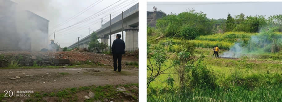 在工作专班和铁路沿线镇、村的共同努力下,整治工作取得明显成效,距离铁路过近的巴河镇群丰村一养猪场和袁家桥村一废弃羊栏均已得到拆除,建筑废弃物也将在七个工作日内清理完成,工作专班还在排查中发现两处秸秆露天焚烧火点,均得到及时扑灭。