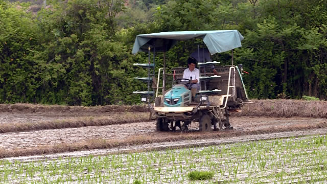 关口镇双河村双河大畈是我县水稻高效连片种植示范片区。4月28号,种粮大户刘小鹏组织四台插秧机开展旋耕和机插作业。统一机防、机耕、机插、统一收购, 带动农户12000余亩。
