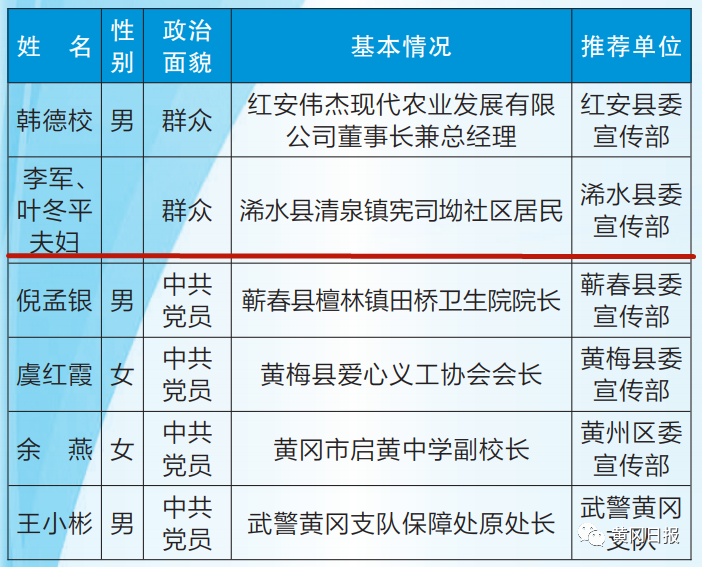黄冈楷模榜单揭晓