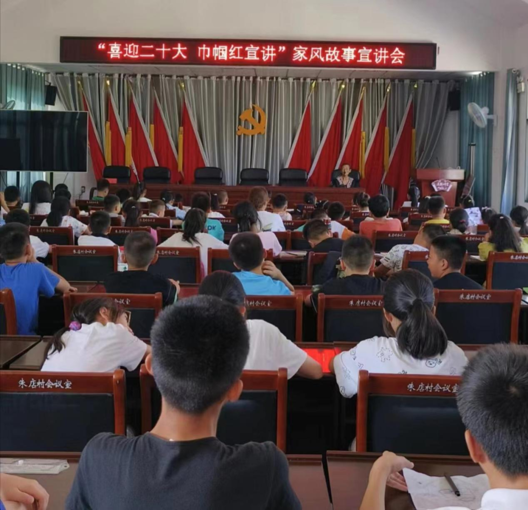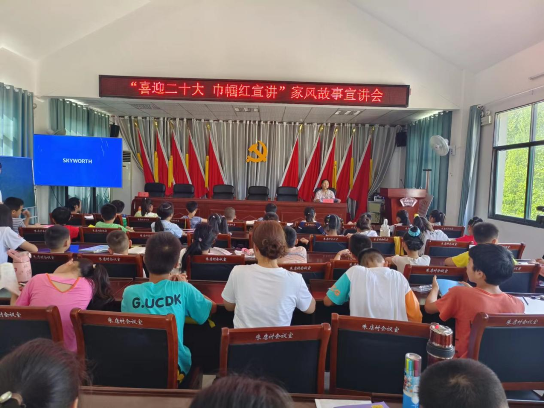 7月14日,竹瓦镇妇联组织开展“喜迎二十大 巾帼红宣讲”活动,邀请朱店村蔡秋梅老党员、南新春妇女代表为70名儿童分享家风故事,她们从诚信为本、勤俭持家、爱心传承、担当敬业、孝敬老人、红色家风等不同角度,用朴实的语言、真挚的情感,将优良家风故事娓娓道来,充满了向善向上的正能量,教育和引导孩子们传承新时代家风美德。