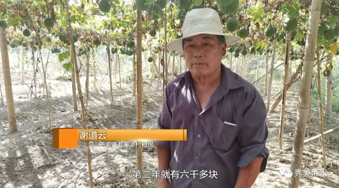 巴河镇七里冲村村民 谢道云:头一年我试种了两亩,大约收益四千多块钱,第二年就有六千多块,今年是四年,种植瓜蒌确实有好处,瓜皮也值钱,瓜根也值钱,瓜籽更值钱,我准备今年再增加两亩。