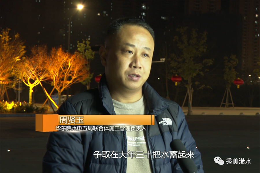 华东院水电五局联合体施工管理负责人 周贤玉:现在我们在每天调水量,争取在大年三十把水蓄起来,蓄起来以后整个我们一河两岸的水坝,给咱们景观添加一个亮点,我们在道路,公园内悬挂灯笼中国结,近500个,增添节日的气氛。