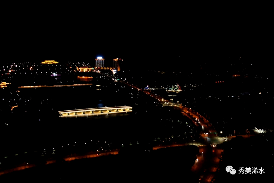 盛装下的浠河两岸,夜间灯光璀璨,两岸边的公园、道路边挂满了灯笼、中国结,水岸美景交相辉映。