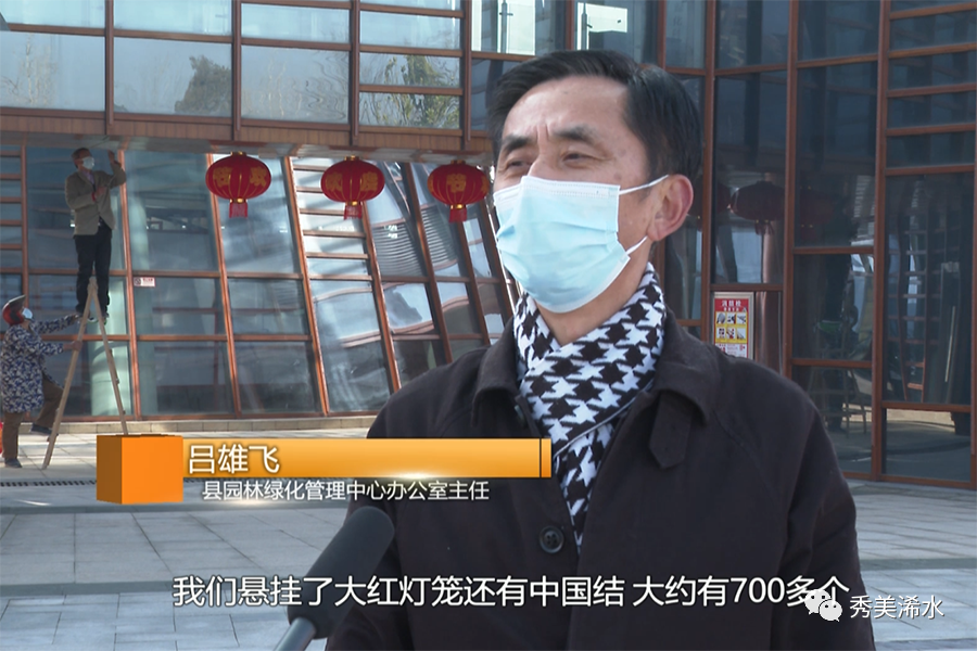 县园林绿化管理中心办公室主任 吕雄飞:为了使这个节日气氛更加的浓厚,我们悬挂了大红灯笼还有中国结,大约有700多个,(让)大家感觉到有一种回家的感觉,而且为现在的这个气氛感到很自豪。