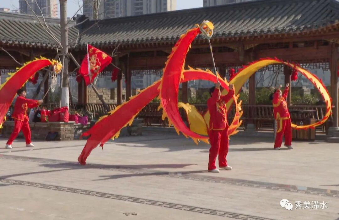 活动现场,新贵族服装城应邀组织开展了模特走秀,龙之魂舞龙队应邀表演了绸龙舞《春之韵》。