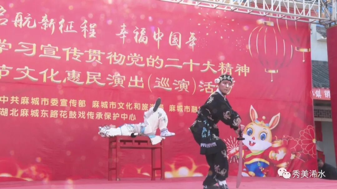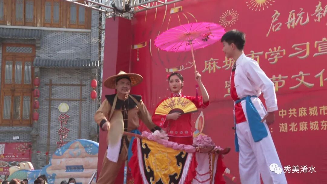 1月31日,县楚剧团赴黄冈东坡庙会麻城分会场交流演出,三出楚剧折子戏让当地市民过足戏瘾。麻城市副市长张星、浠水县副县长柯珍堂和广大市民一起观赏了表演。