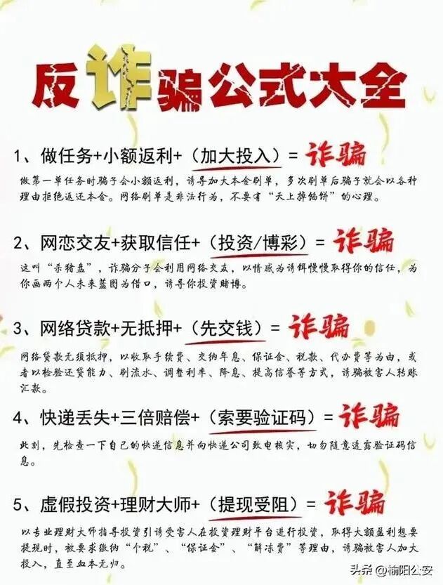 做第一单任务时骗子会小额返利,诱导加大本金刷单,多次刷单后骗子就会以各种理由拒绝返还本金。网络刷单是非法行为,不要有“天上掉馅饼”的心理!