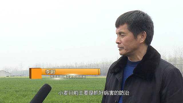 市农科院棉花研究所所长李蔚:“小麦目前主要是抓好病害的防治,“一喷三防”保证小麦的病害不发生。”
