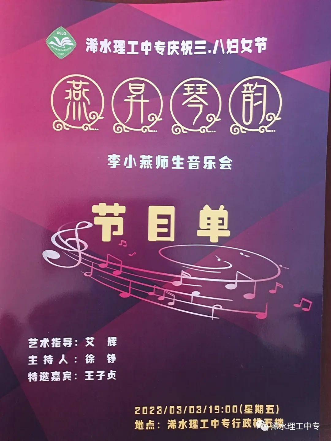 理工中专音乐教师李小燕毕业于武汉音乐学院 ,是市级骨干教师,曾获五项全能大赛省级一等奖,市级示范课一等奖。3月3日晚,理工中专校内的此次情趣高雅的李小燕师生专场音乐会给全校女教工带来了天籁之音和视听盛宴,高雅的艺术也陶冶了情操,为女教职工的业余生活增添了一份难忘的色彩。