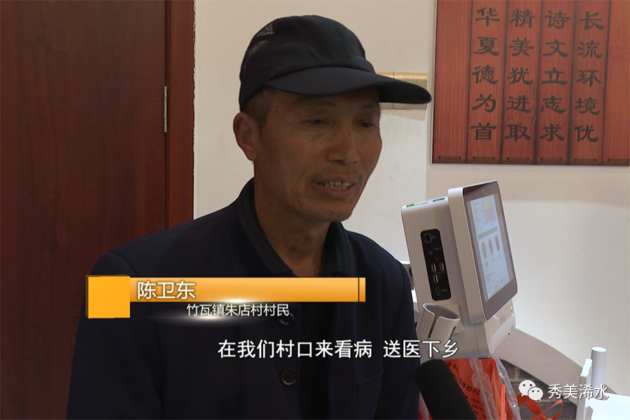 竹瓦镇朱店村村民 陈卫东:在我们村口看病,送医下乡,我们感到非常方便,还可以实时了解我们的身体状况。