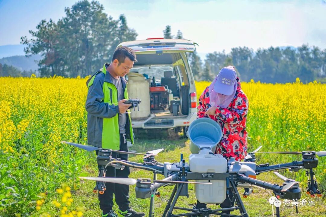阳春三月,洗马镇小金山村种植大户周伟华家的600多亩油菜田一片金黄。3月15号一大早,县农业农村局的农技人员和飞防手就来到油菜地里。