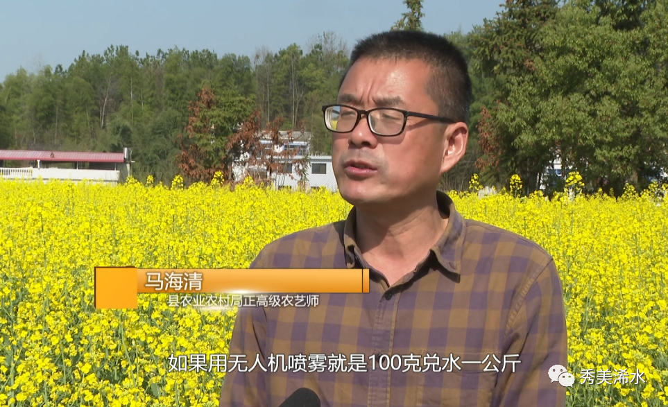 县农业农村局正高级农艺师 马海清:防治菌核病最好的使用的药剂就是用咪鲜胺,每亩用100克兑水40公斤喷雾,如果用无人机喷雾就是100克兑水一公斤。