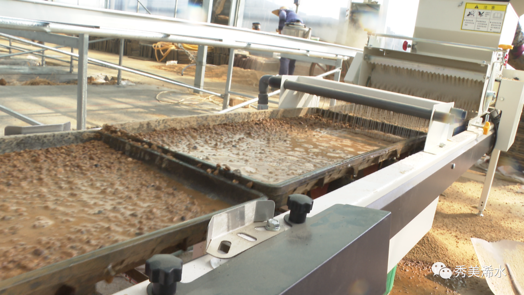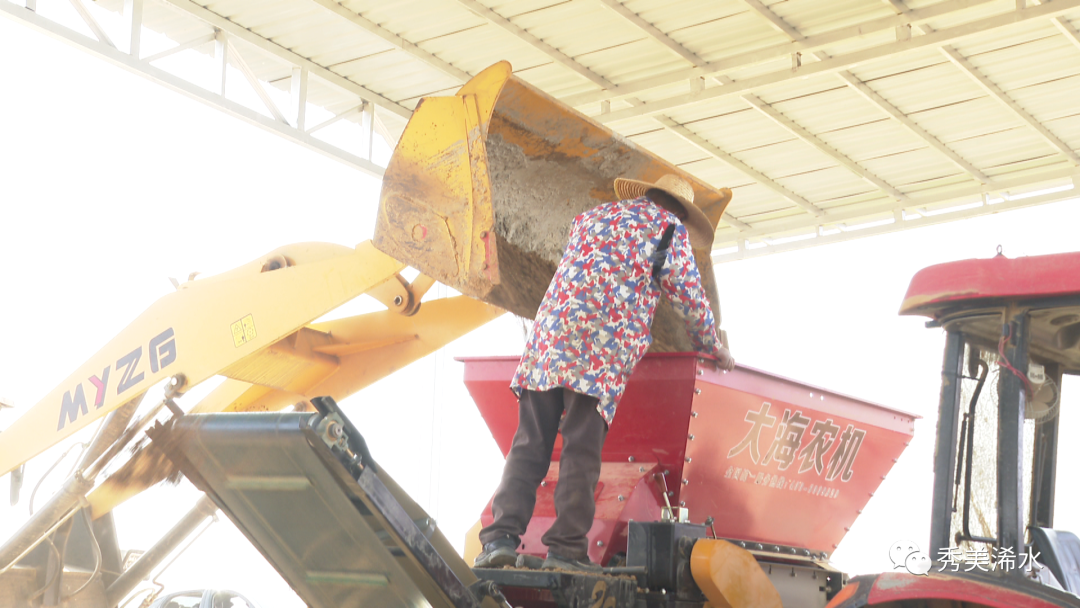 流水线育秧苗,只需按下总开关,机器轰隆起来,流水线立马运转,省工、省力又省时。