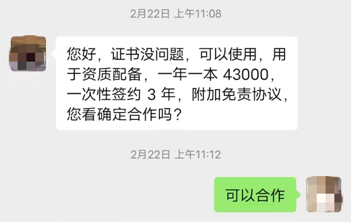 今年2月份,浠水县散花镇潘先生在网上自考了5本职业资格证书。当证书拿到手后,潘先生接到了自称是“某咨询公司”的电话,称其是中介机构,可以帮人利用证书挂靠到国企,便能赚取高额的挂靠兼职费。潘先生心动了,随后便添加了对方的微信,对方和潘先生详细谈了证书的用途、费用和签约年限,当了解到一本证书一年挂靠费用有43000元,潘先生难掩心中激动,便按照对方的要求将相关证书拍照发过去。