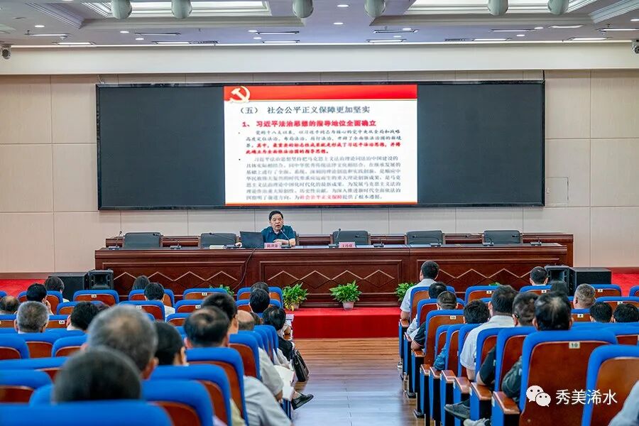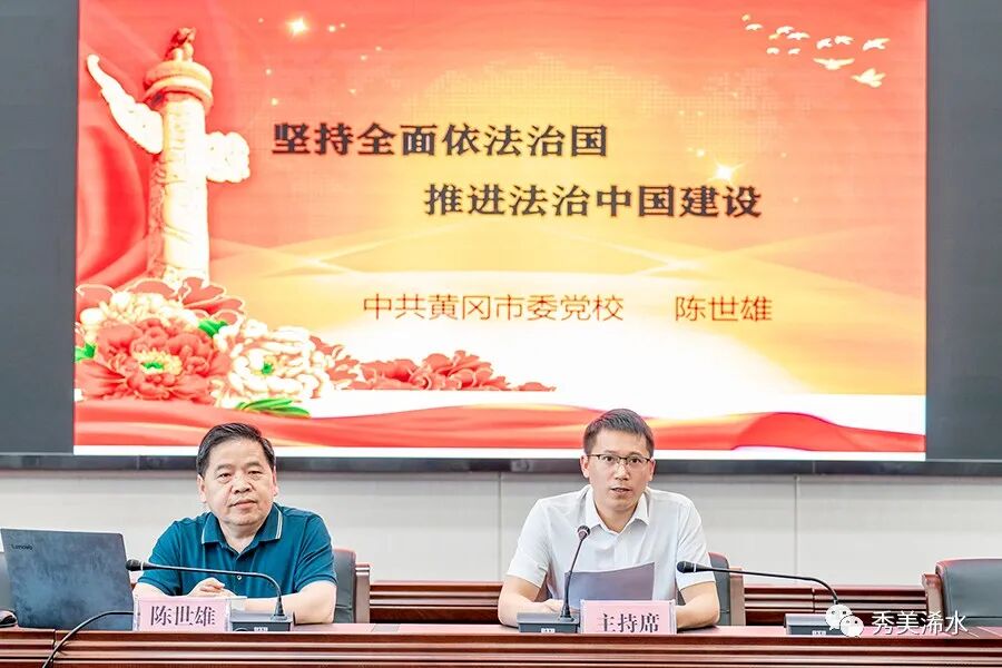 黄冈市委党校副教授陈世雄应邀作专题授课,他以《坚持全面依法治国,推进法治中国建设》为题,用生动形象的语言、精辟严密的论述、渊博严谨的专业知识、理论联系实际的生动讲解,从十八大以来十年法治建设成就、全面依法治国的重大意义与总目标、从五四宪法到全面依法治国和法治中国建设的重大战略部署等四个方面系统阐释了依法治国方略的形成、发展与实施,法治中国建设的过去、现在与未来,对我县广大干部深入理解习近平法治思想的核心要义,全面落实依法治国基本方略,加快平安浠水、法治浠水建设起到积极的指导作用。
