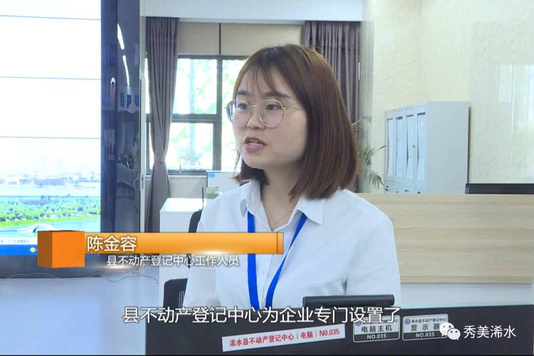县不动产登记中心工作人员 陈金容:县不动产登记中心为企业专门设置了“小微企业(含个体工商户)”窗口,推行绿色通道、代办帮办、延时、预约上门、免费邮寄证书等服务。今年,我们又新推行首席服务员制,全面实行“一人一企”全程跟踪服务。