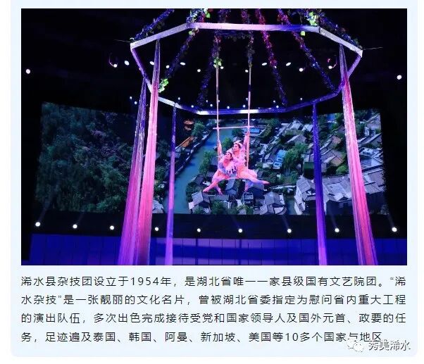 浠水县杂技团设立于1954年,是湖北省唯一一家县级国有文艺院团。“浠水杂技”是一张靓丽的文化名片,曾被湖北省委指定为慰问省内重大工程的演出队伍,多次出色完成接待受党和国家领导人及国外元首、政要的任务,足迹遍及泰国、韩国、阿曼、新加坡、美国等10多个国家与地区。