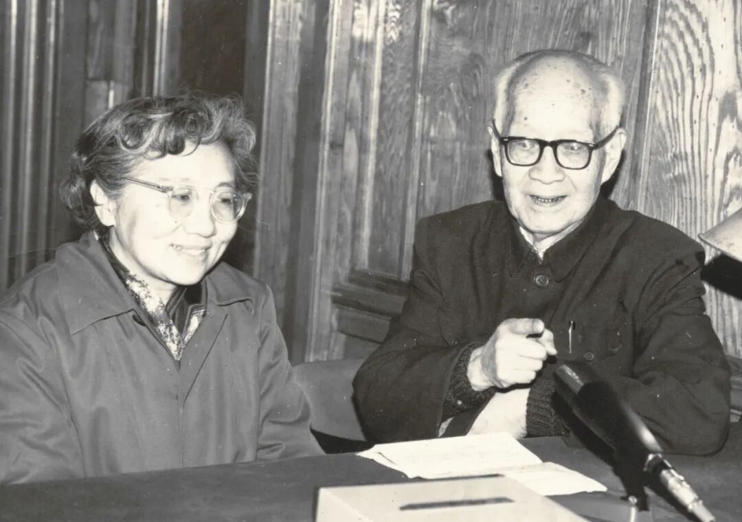 △“故事奶奶”康瑛(左)和“故事爷爷”孙敬修(右)为《小喇叭》录制节目。