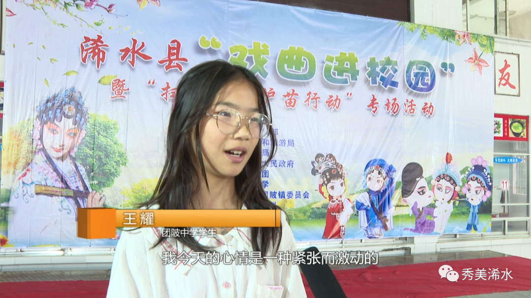 团陂中学学生 王耀:我今天的心情是一种紧张而激动的,非常的好看,感受到楚剧的博大精深。