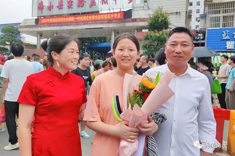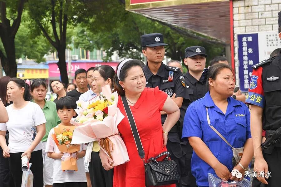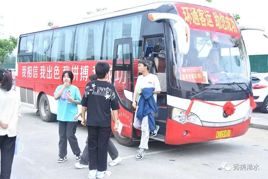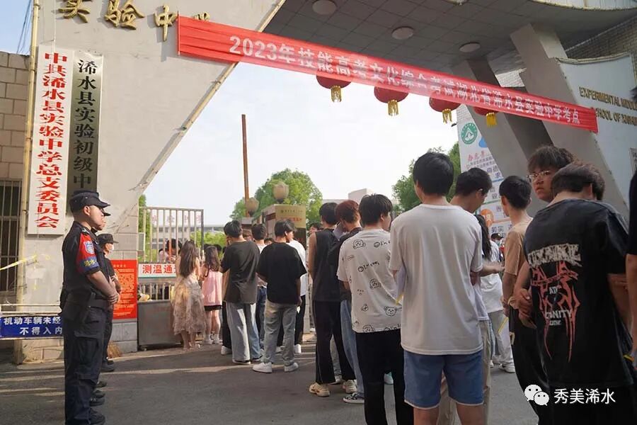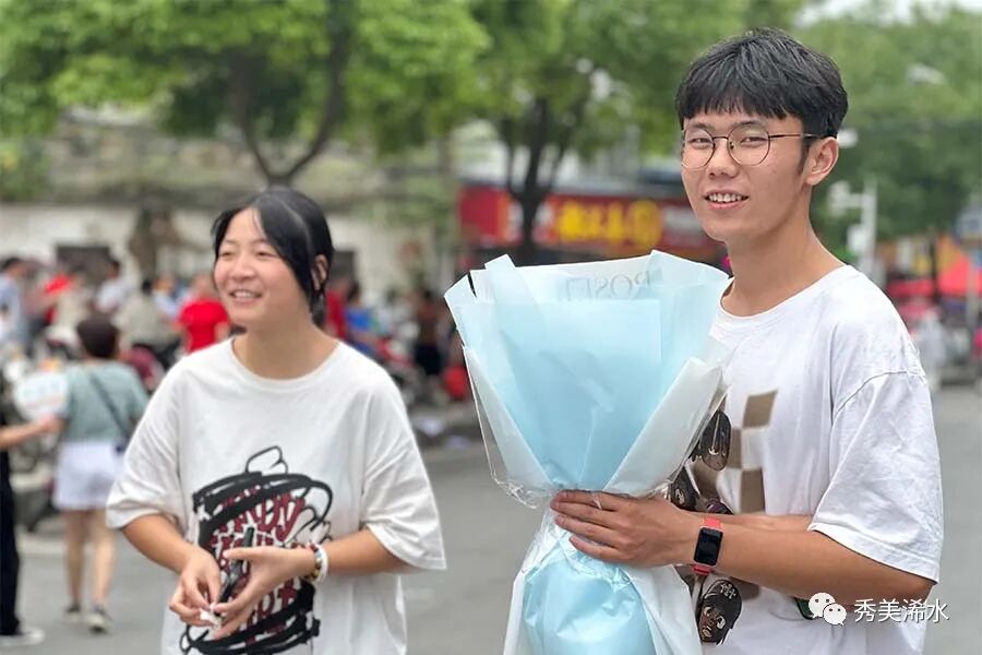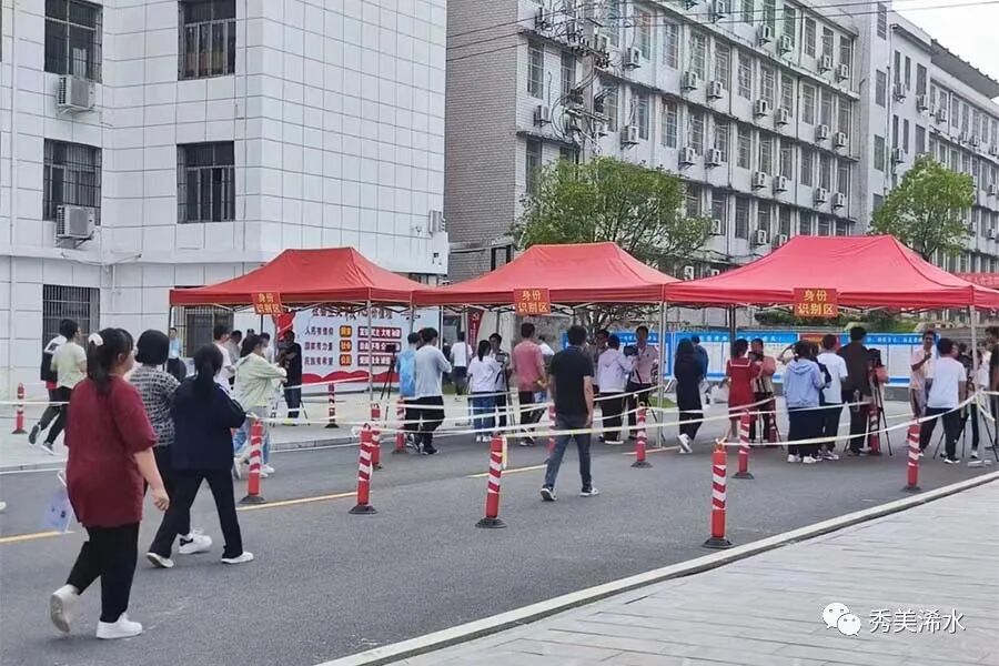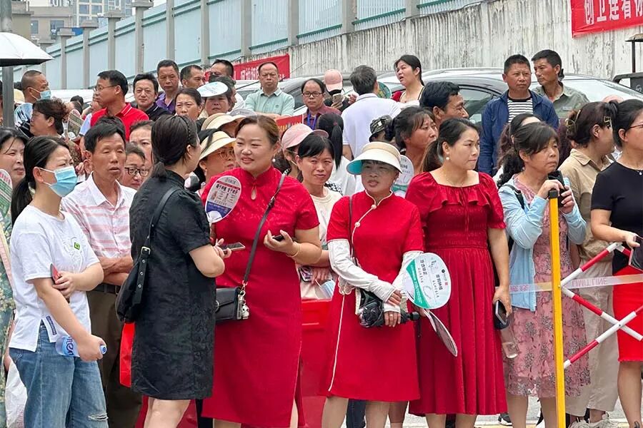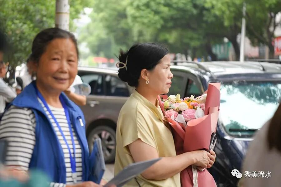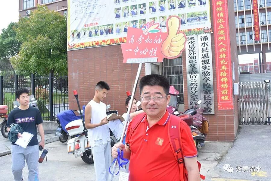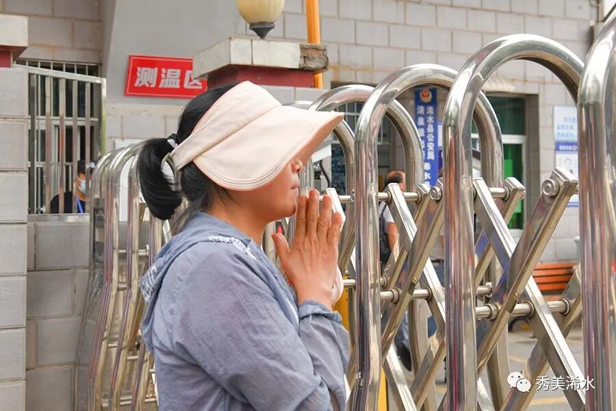 考场外的父母、老师以自己的方式在考场外为孩子加油打气