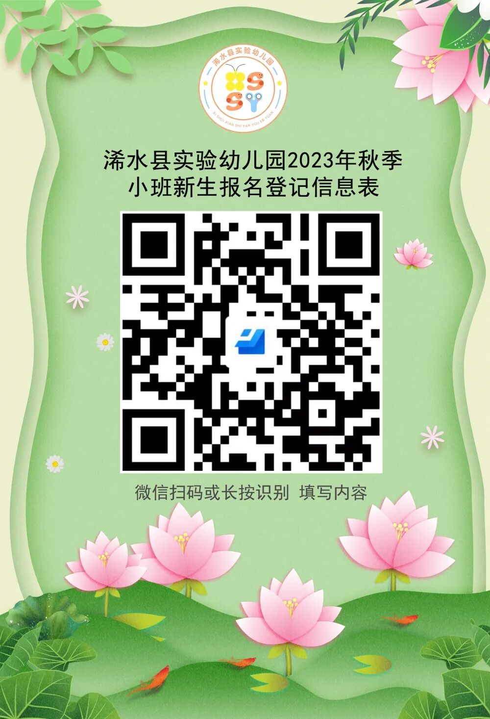 本次招生实验幼儿园采取线上登记的方式(扫下方二维码),园方对家长提交的登记信息,实行线上初审,初审符合条件的幼儿,实验幼儿园将通知家长分批次、分时段到幼儿园现场核验报名材料。届时将通过实验幼儿园微信公众号告知后续事宜,请各位家长持续关注“浠水县实验幼儿园”推送的消息,按时携带相关材料来园接受核验。
