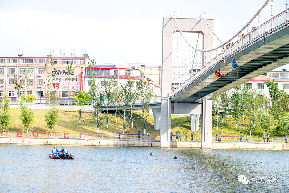 人民至上!生命至上!为不断提升我县自然灾害应急救援能力,6月15日,浠水在一河两岸映水桥水域举行城市内涝防汛综合演练。