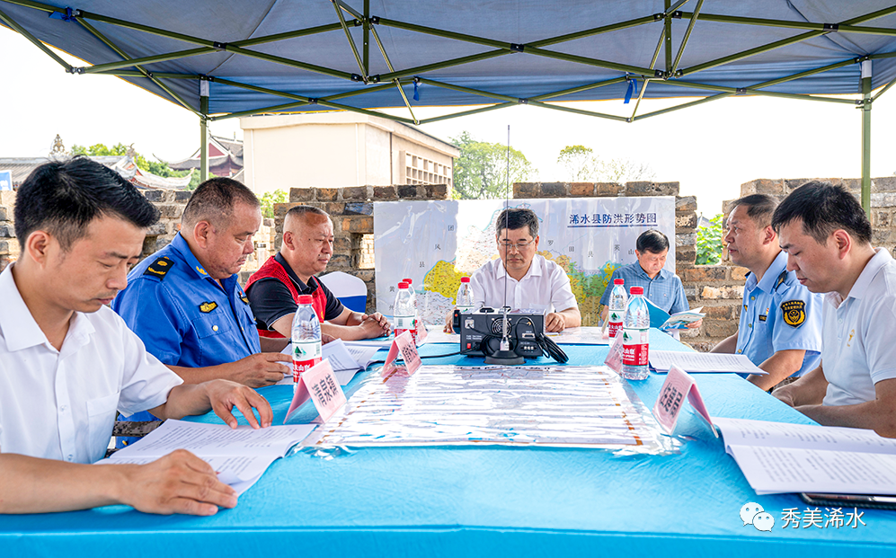 灾情设定:6月15日,我县遭遇罕见持续强降雨,据气象部门数据表明,从6月14日8时到15日8时,浠水县城区24小时降水量达到240mm,预计未来3小时城区及周边仍有乡镇仍有50-80毫米降水,并伴有雷电,阵风7-9级。因降雨持续时间长、累积雨量大,强降雨时段集中且范围广,浠水河城区河段水面不断扩大,已超过警戒水位、接近保证水位,淹没范围不断扩大。城区多处交通设施、居民小区、学校等区域积水深度大于0.5m,持续时间大于6小时,已出现基础设施损毁,道路被淹、群众被困等重大险情,可能造成重大社会影响和生命财产损失。县防指会商后决定,启动防汛三级应急响应。县防指各成员单位根据预案启动抢险救援工作,防汛抢险应急救援力量已集结待命,随时准备实施应急抢险救援任务。