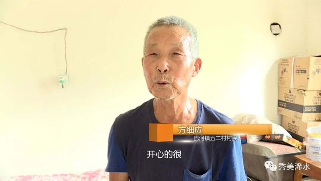 巴河镇五二村村民 方细应:开心得很,二儿媳妇问我睡不睡得着,我说我睡得蛮好,比我那个小屋还强一些,(他们)马上要给我买个新空调,还要给我买个电视。