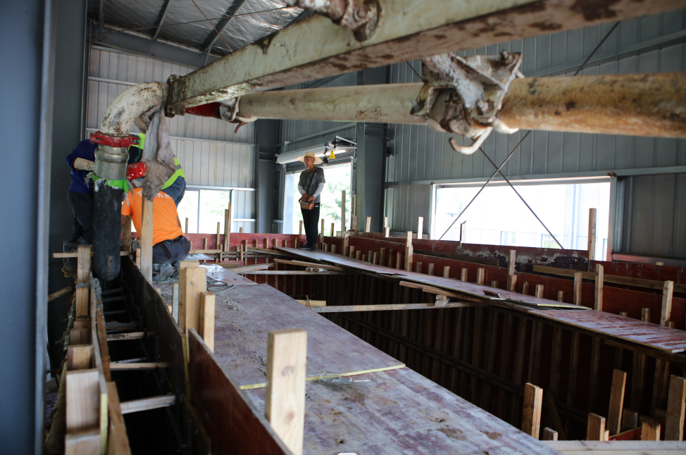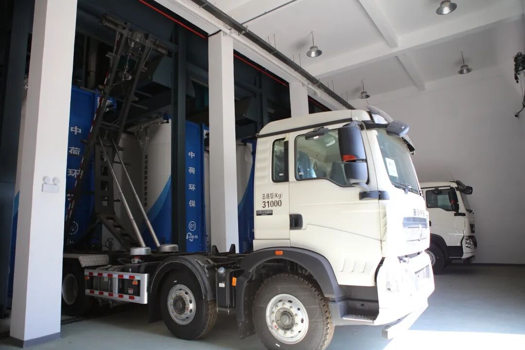 6月27日,在浠水县南城垃圾转运中心垃圾处理站里,竖式装箱压缩设备站房已安装完工,两台大型垃圾转运车也已配备到位,工人们正安装餐厨垃圾处理设备。