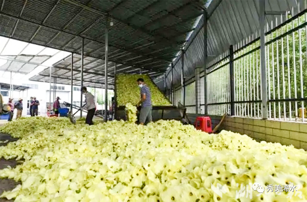 盐客树村坚持“党建引领、统战搭台、商会牵线、村企唱戏”的工作思路,充分挖掘商会、民营企业、创新创业人士等资源,聚焦村企联建、产业共赢,立足村情和资源禀赋,将板栗专业合作社和蔬菜专业合作社融合,组建湖北盐客树生态农业有限公司,通过公司化运营、规模化种植、市场化营销等措施,大力发展金银花、菊花、黄蜀葵、黄花、玉竹等“五花”产业,实现了“五花”产业从种植到加工再到销售全产业链生产模式,以“支部+股民+基地”发展模式,带动“家家入股,户户分红”。