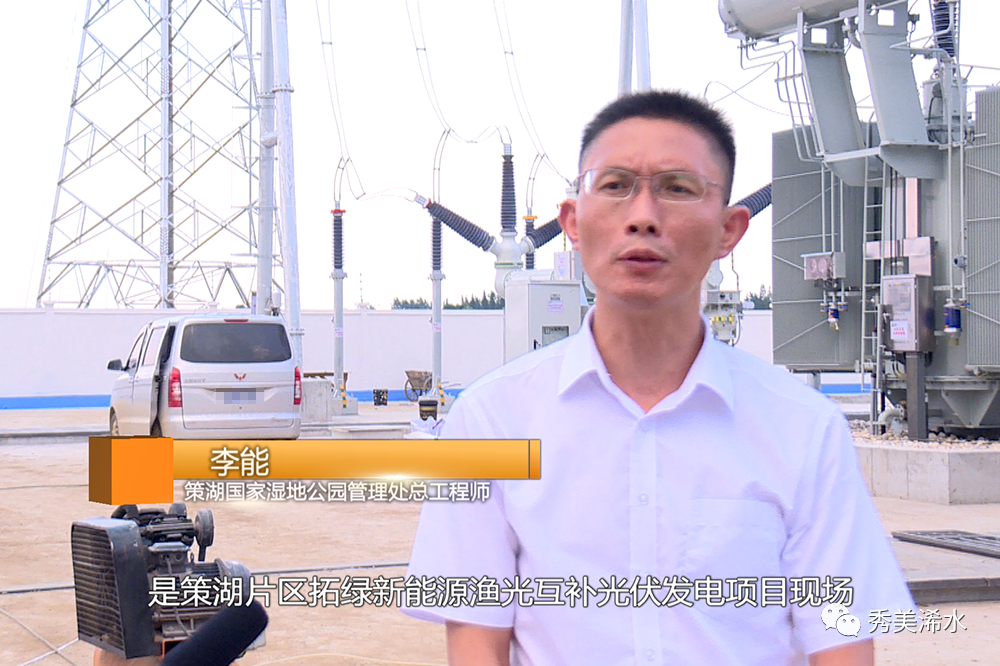 我们现在所在的位置,是策湖片区拓绿新能源渔光互补光伏发电项目现场。该项目是拓绿新能源浠水县一期500MW农(渔)光互补光伏发电项目的重要组成部分,区域投资2.7亿元,流转精养鱼池29个,面积1800亩。目前,项目已完成投资过2亿元,近期可以实现并网发电。