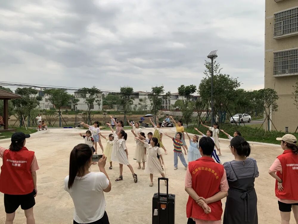 志愿者们带领留守儿童们通过自我介绍、趣味小游戏打破隔阂,熟悉彼此,增进感情。此外,以深入浅出、寓教于乐的方式为孩子们安排开展防火防电防溺水、预防校园暴力、交通安全等安全知识讲座、生态文明小课堂、变废为宝手工课,还有爱国主义与传统文化等系列丰富多彩的主题教育活动。与其他学生志愿队不同的是,这批志愿者们来自武汉音乐学院舞蹈系的学生,除了上述普遍的实践活动外,他们还准备以五十六个民族作为切入点,在学习民族传统文化的同时,科普、赏析和学习民族舞蹈。