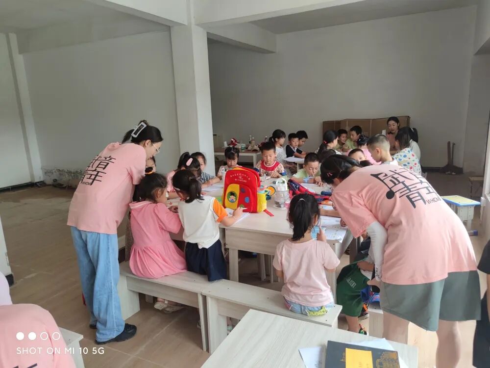 “留守儿童”是一个特殊的群体,他们的健康成长关系到整个家庭的希望与安定。年轻的志愿者们根据留守儿童的实际需求,精心设计了暑期课程,辅导孩子们暑假一年级至六年级作业,进行暑假实践活动。通过趣味课堂和温情陪伴的形式,帮助孩子们提高综合素质和艺术修养,给予留守儿童情感的陪伴。