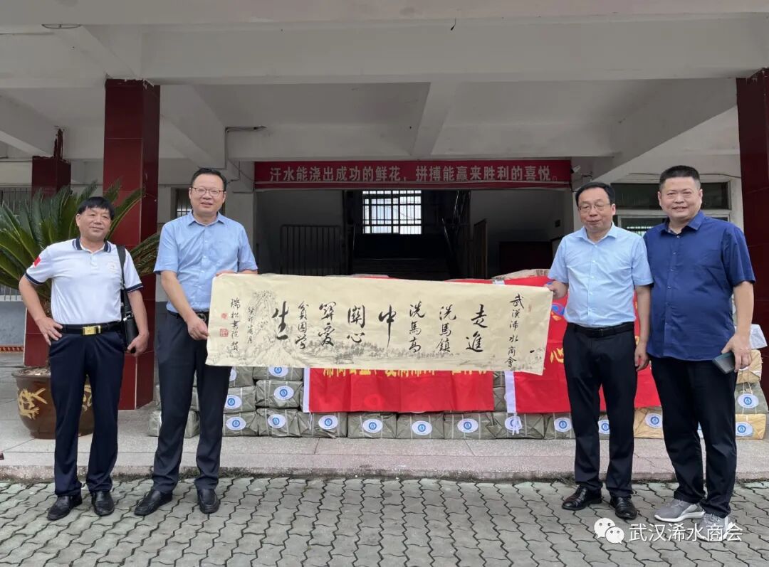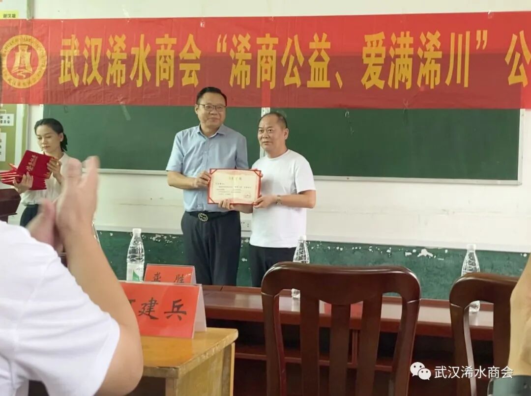 浠水商会执行会长兼秘书长龚胜、副会长宋勤和浠水县研学旅行与劳动教育中心负责人,分别向洗马高中捐赠图书以及向洗马高中23名困难家庭学生发放每人1000元的帮扶资金和三天两晚的免费研学旅行。龚胜代表商会向宋勤等8位爱心企业家颁发捐赠证书。