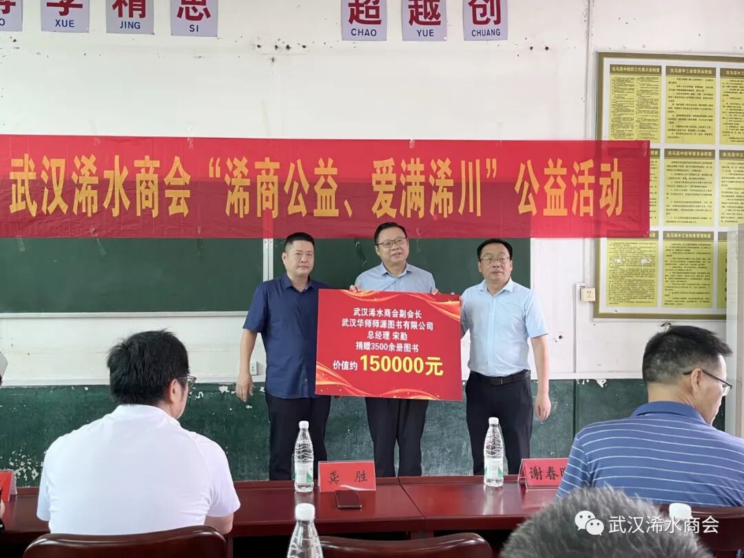 本次公益助学活动,由武汉浠水商会联合武汉华师师源图书有限公司、浠水县研学旅行与劳动教育中心,以及商会部分常务副会长、副会长和会员共同向洗马高中捐书、捐款折合人民币20余万元。