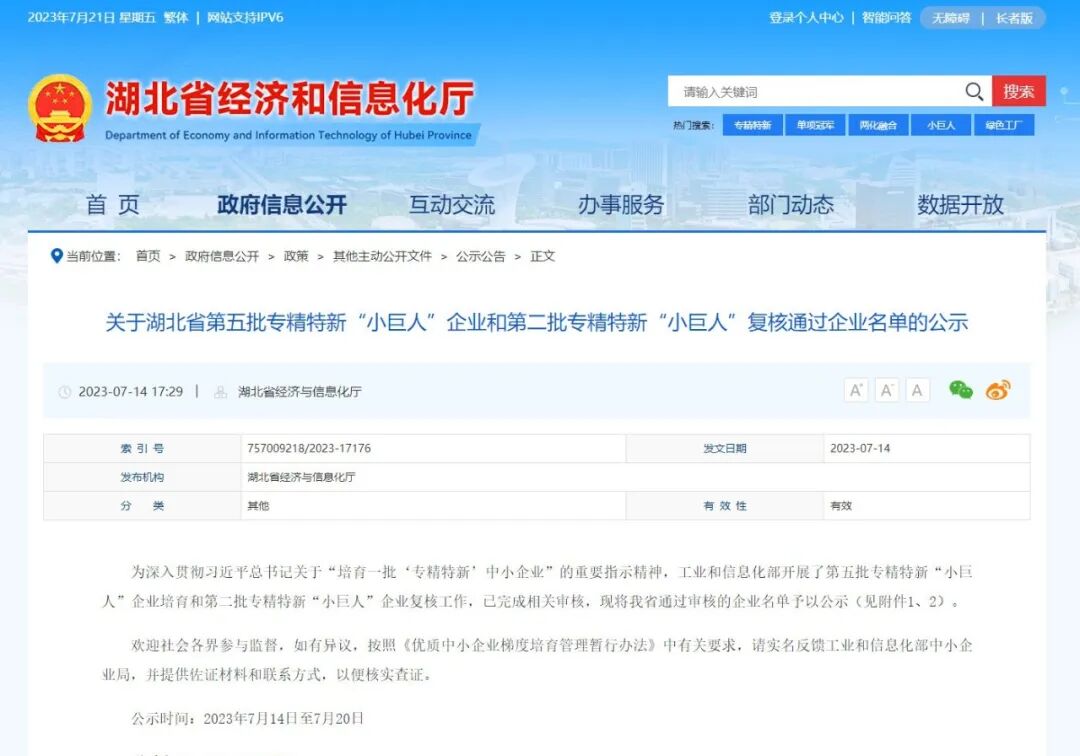 近日,湖北省经信厅发布《关于湖北省第五批专精特新“小巨人”企业和第二批专精特新“小巨人”复核通过企业名单的公示》,我县湖北恒祥科技股份有限公司、湖北赛尔新能源材料有限公司2家企业成功入选。