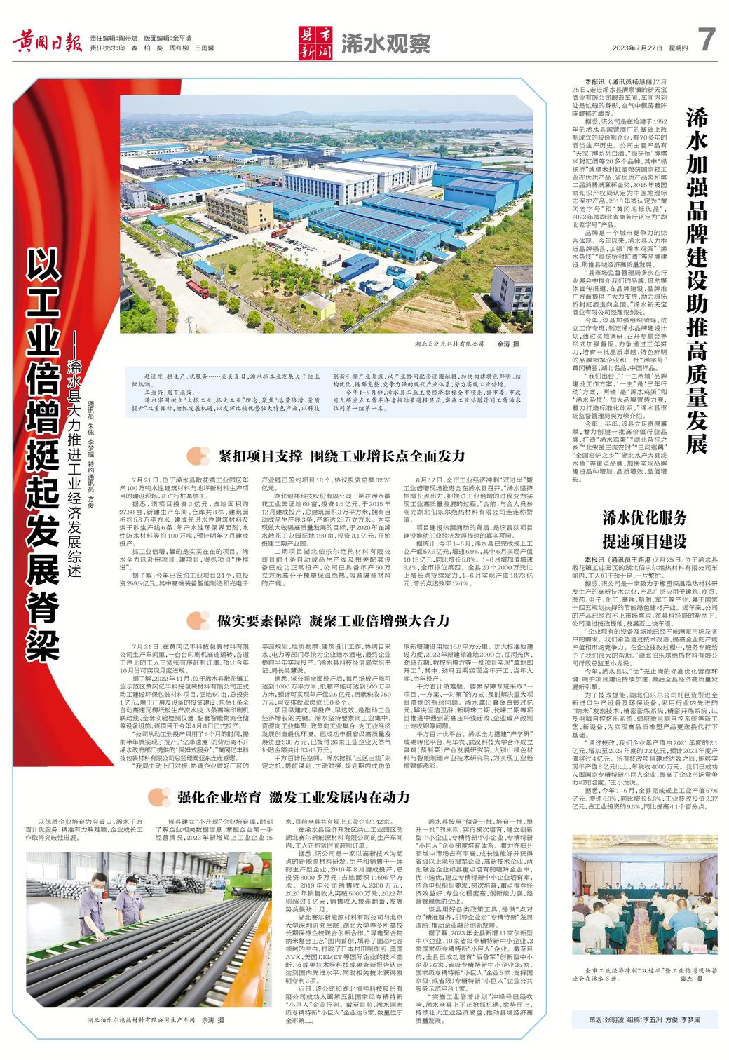 7月27日,黄冈日报第7版整版关注浠水以工业倍增挺起发展脊梁,一起来看!↓↓↓