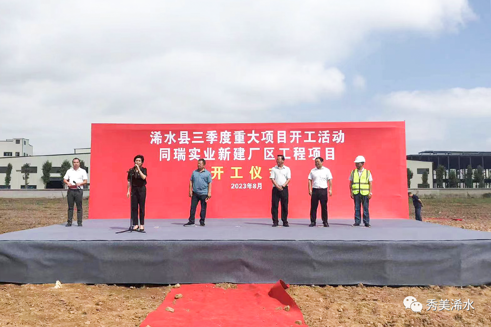 8月1日,同瑞实业新建厂区工程项目开工仪式在散花示范区举行,县委常委、县政府副县长汪湘云出席开工仪式并宣布项目开工。