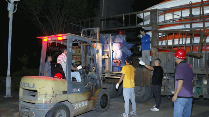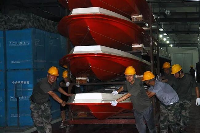 突击队员挥汗如雨、连续战斗,迅速完成了喷水组合式抢险舟20艘、嵌入型抢险舟30艘、81马力喷泵式发动机20台、船外机30台及专用机油50箱等防汛救灾物资的装车及清点任务,并选派分管负责人带领2名防汛业务骨干负责押运,星夜奔赴河北防汛救灾现场。