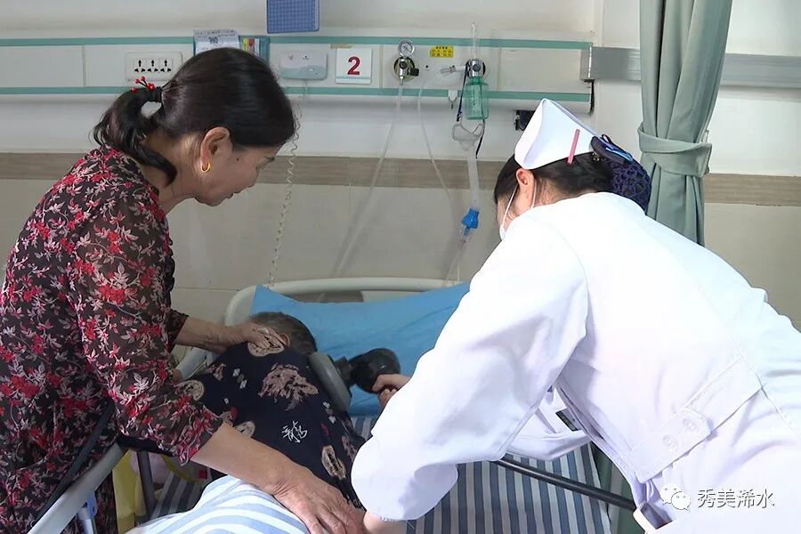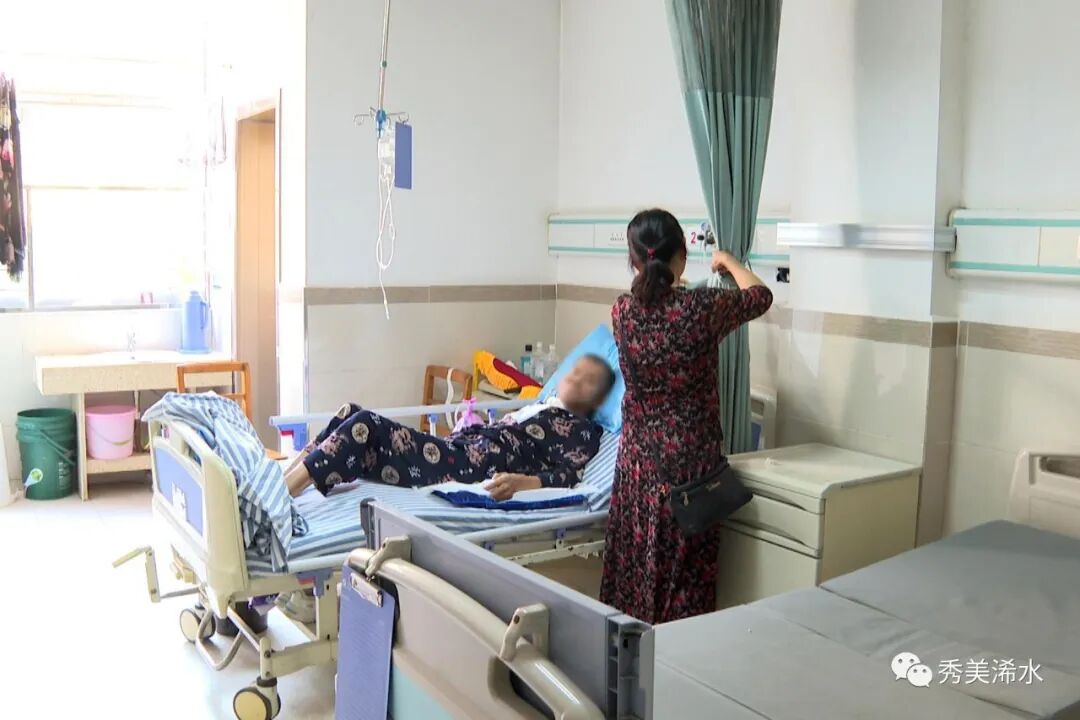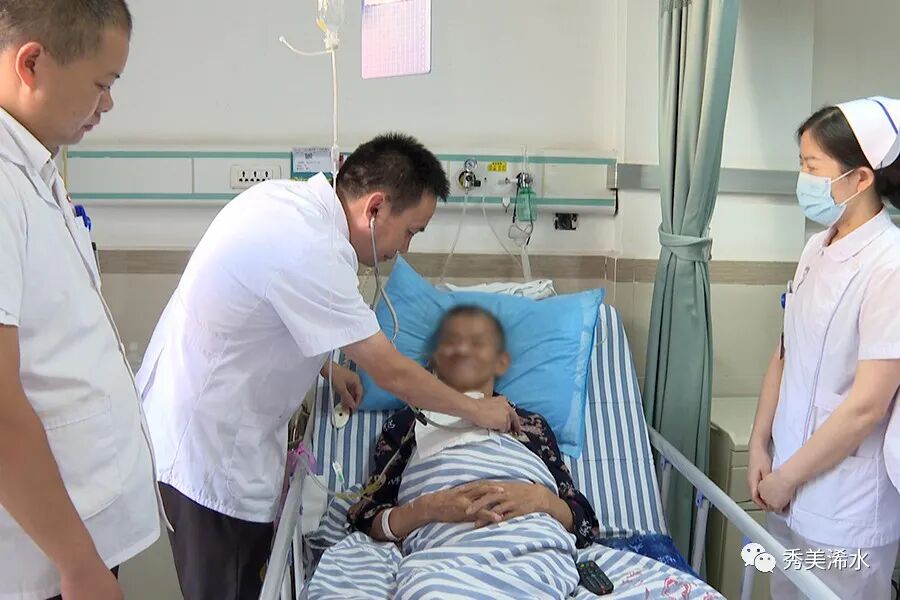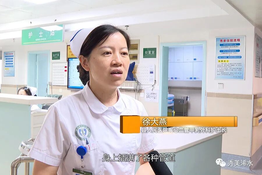 县人民医院胸心血管甲乳外科护士长 徐大燕:病人当时来的情况非常严重,身上插满了各种管道,每天给他翻身、拍背、吸痰、喂食,还有其他的各种治疗等等,陪他聊天,安抚他的情绪,由开始的抗拒,变得后面很配合我们,到现在为止已经在我们科室住了40多天了,病人现在情况恢复得很好,近期就考虑出院了。