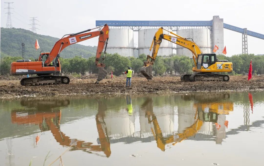中交集团投入了挖掘机、装载机、推土机等设备共48台(套),截至目前共完成7.5公里的河道清理。