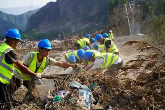 8月16日,中国铁建组织投入各类工种750余人,上场挖掘机、推土机等各类设备306台(套),清理陈家庄特大桥至麻峪村段约13公里永定河流域内的建筑垃圾、生活垃圾、树木等,加快恢复河道基本面貌,尽快恢复河道行洪功能。