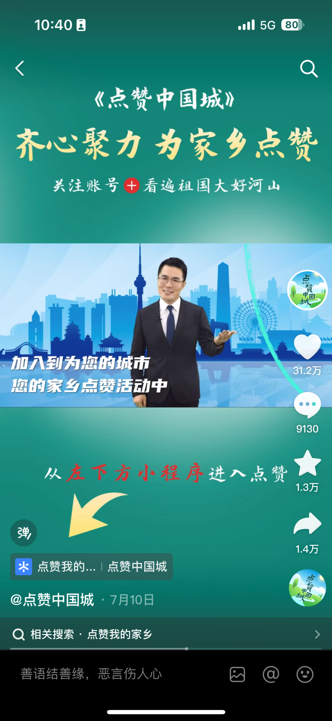 “点赞中国城”是新华网联合中国推介围绕助力城市形象建设与品牌传播,推出“点赞中国城”公益活动,以抖音、快手为点赞互动平台,共同打造更加立体鲜活的城市新名片,齐心聚力为家乡点赞,共同绘制中国城市高质量发展画卷。