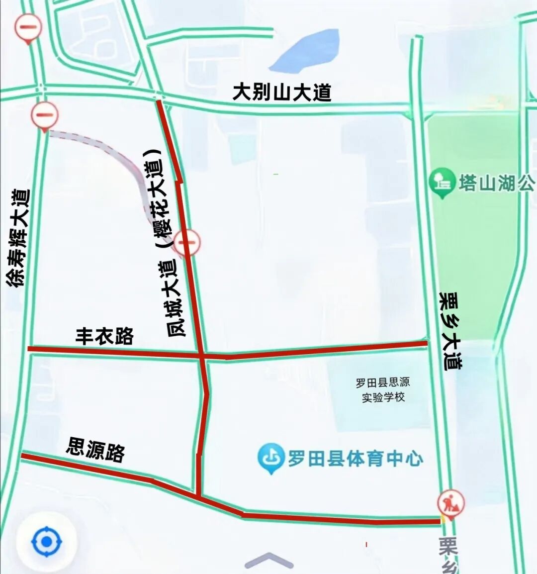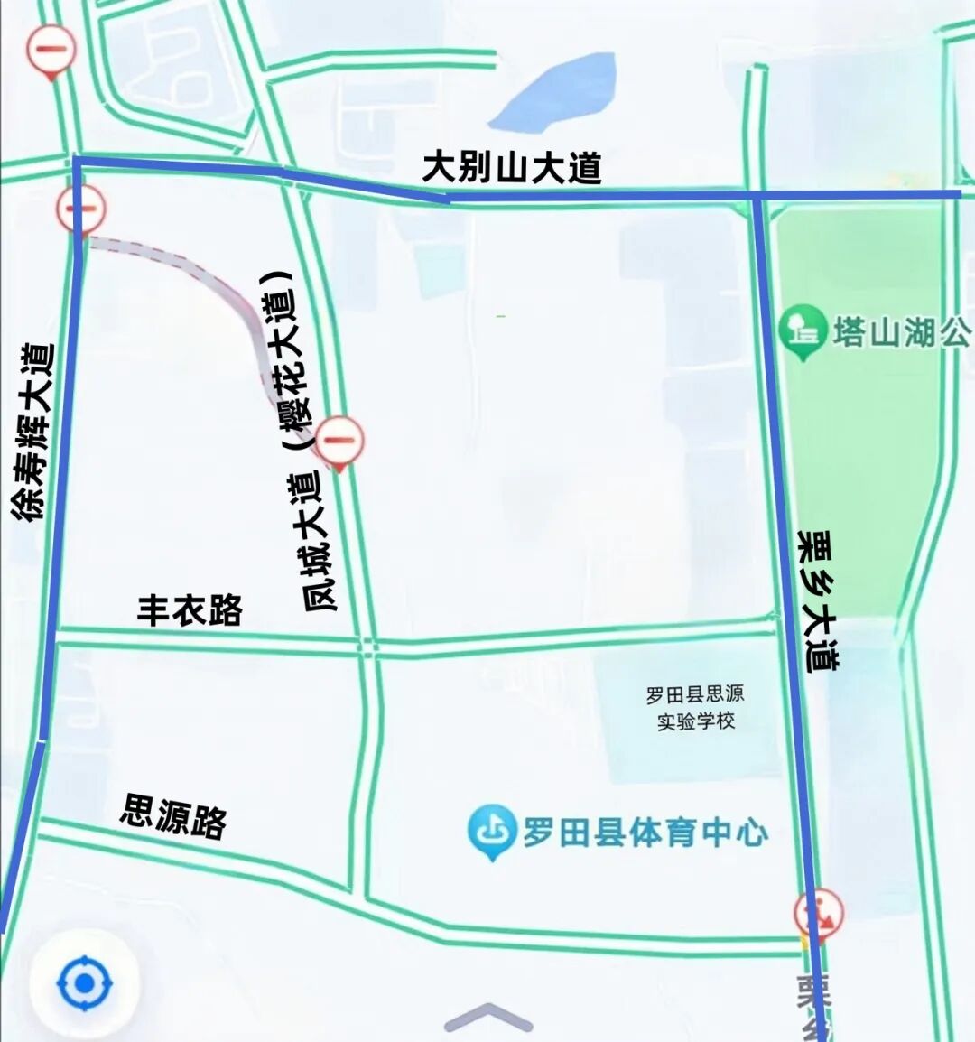 同时,请广大司机朋友在此时间,尽量绕行徐寿辉大道(老交警红绿灯至疾控中心)、大别山大道(老交警红绿灯至一方山水红绿灯)和栗乡大道(居然之家至疾控中心)。