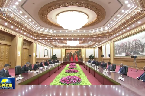 10月17日下午,国家主席习近平在人民大会堂会见来华出席第三届“一带一路”国际合作高峰论坛的塞尔维亚总统武契奇。